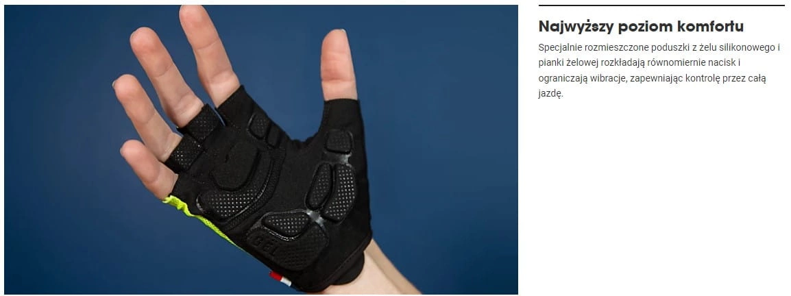 Wyjątkowo wygodne damskie rękawiczki rowerowe z wkładkami żelowymi zoptymalizowane do odpowiedniego rozkładu nacisku.