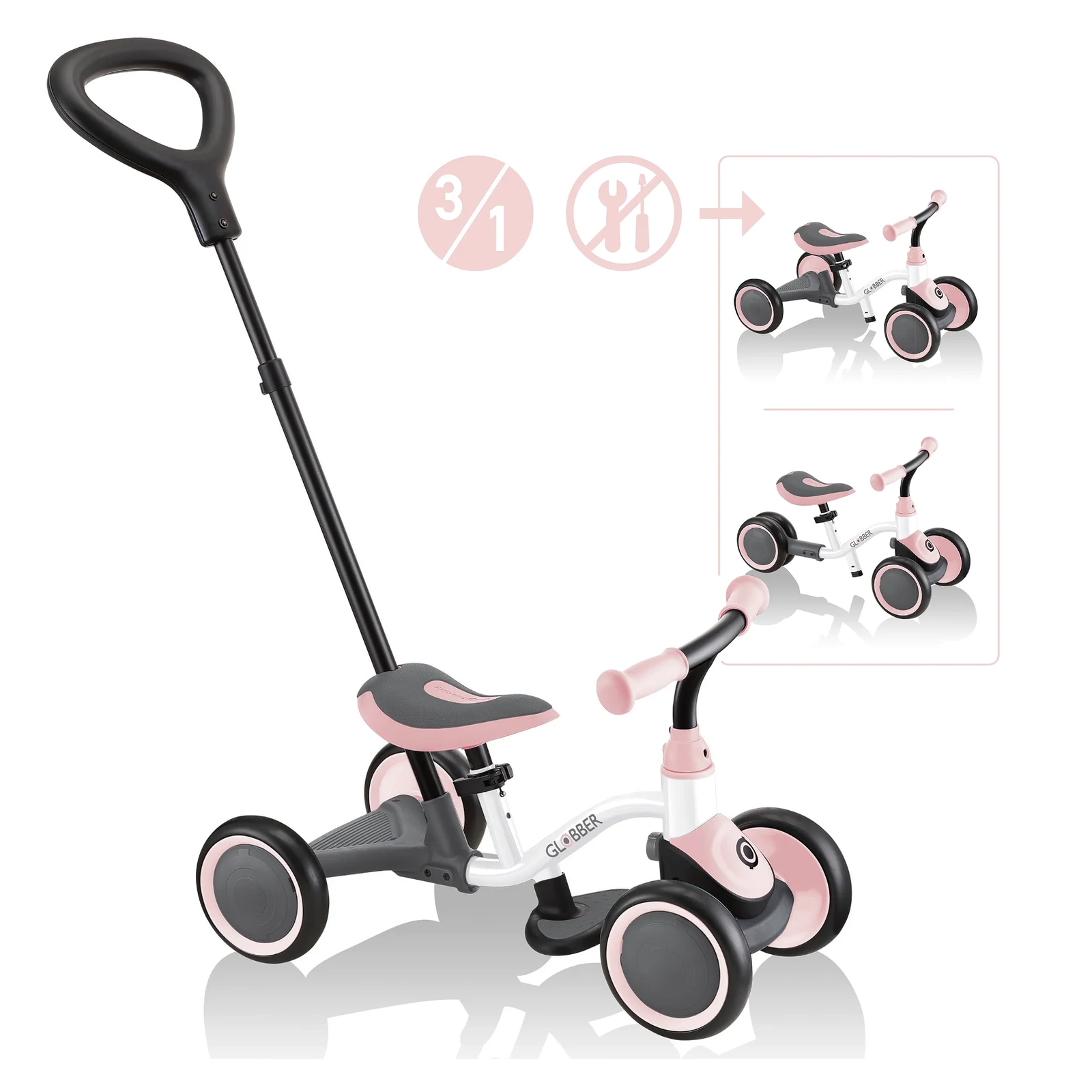 Rower dziecięcy Globber 3w1 koła 6" Biały, Pastelowy różowy