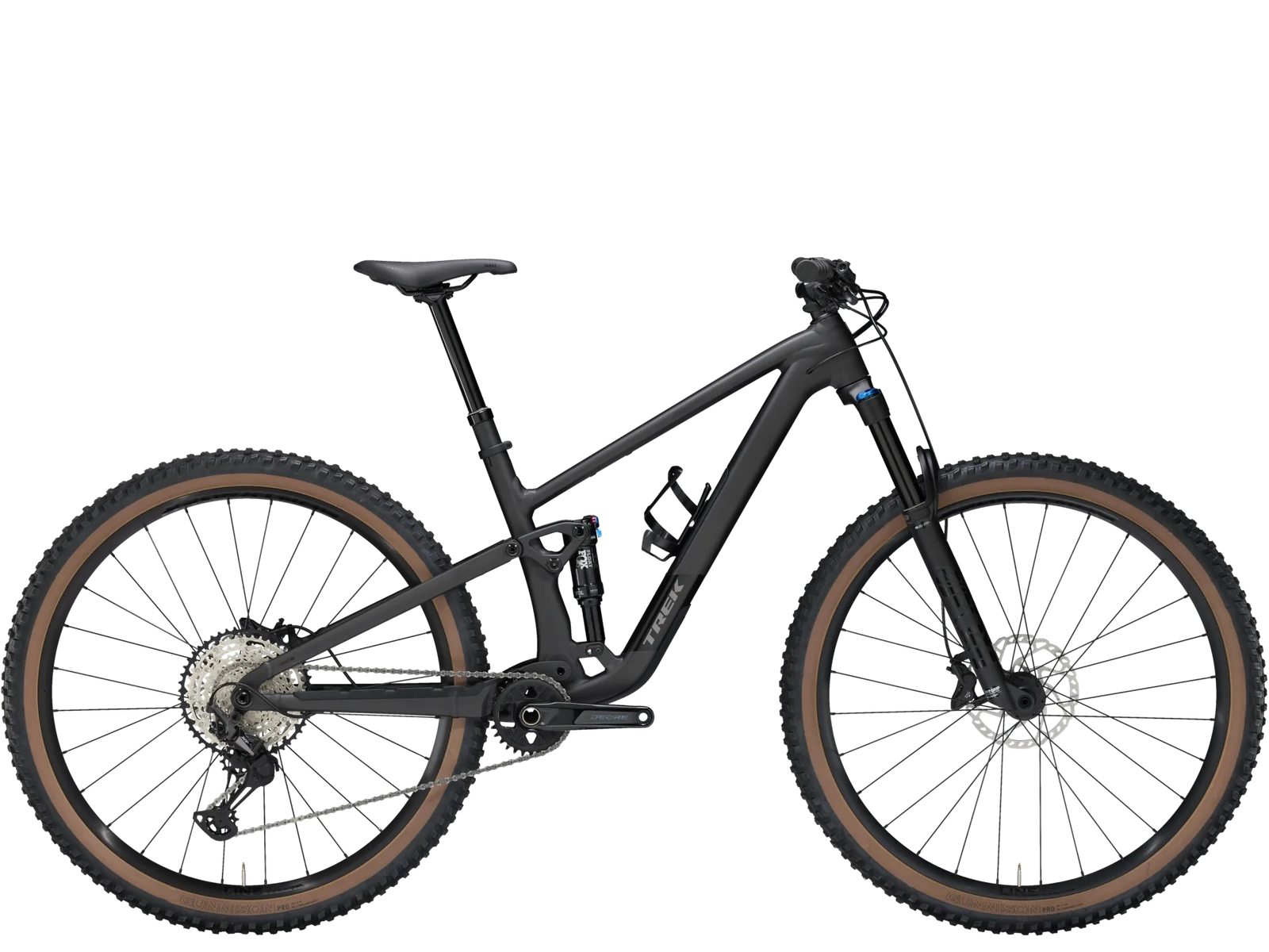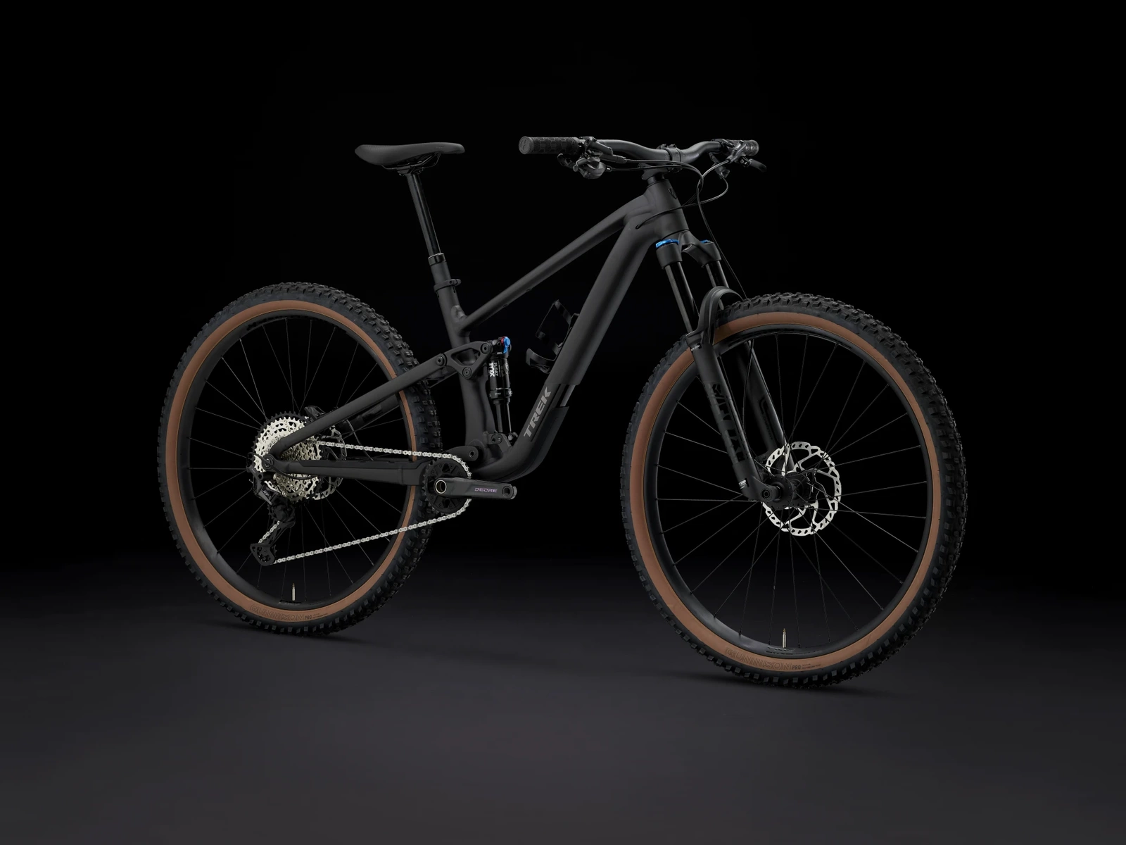 Rama z Alpha Platinum Aluminium z mocowaniem dampera Mino Link o 4 pozycjach do regulacji geometrii oraz stosunku skoku koła do skoku amortyzatora. Widelec amortyzowany FOX Rhythm 34 o 130 mm skoku ze sprężyną powietrzną Float EVOL oraz tłumieniem GRIP, a do tego damper FOX Performance Float z 3-pozycyjnym tłumieniem o 120 mm skoku z tyłu. To wszystko dopełnia 12-biegowy napęd Shimano XT/SLX, hydrauliczne hamulce tarczowe, regulowana sztyca podsiodłowa TranzX oraz koła Bontrager Line Comp 30 przystosowane do montażu bezdętkowego Tubeless Ready.