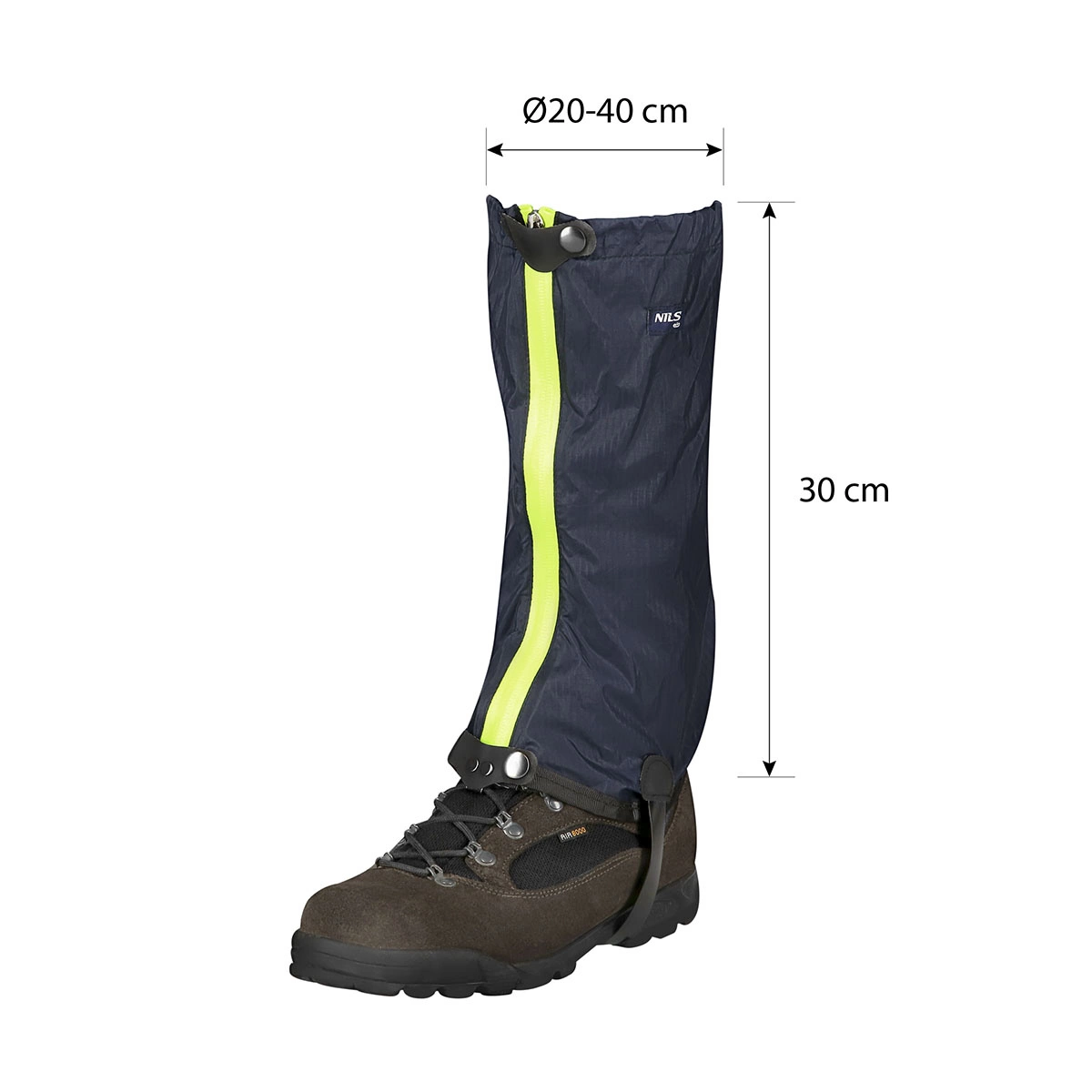NC1770 marki NILS CAMP to wodoodporne stuptuty wykonane z wytrzymałego i lekkiego materiału, które z powodzeniem ochronią cholewkę buta oraz nogawki spodni przed śniegiem, wodą czy błotem. NC1770 są bardzo proste i łatwe w zakładaniu. Stuptuty posiadają zapięcie na suwak, pasek ze ściągaczem oraz haczyk do zamocowania o sznurówki. Te wszystkie funkcje zapewniają odpowiednie dopasowanie na nodze, dzięki czemu stuptuty sprawdzą się w najbardziej wymagających, górskich warunkach.