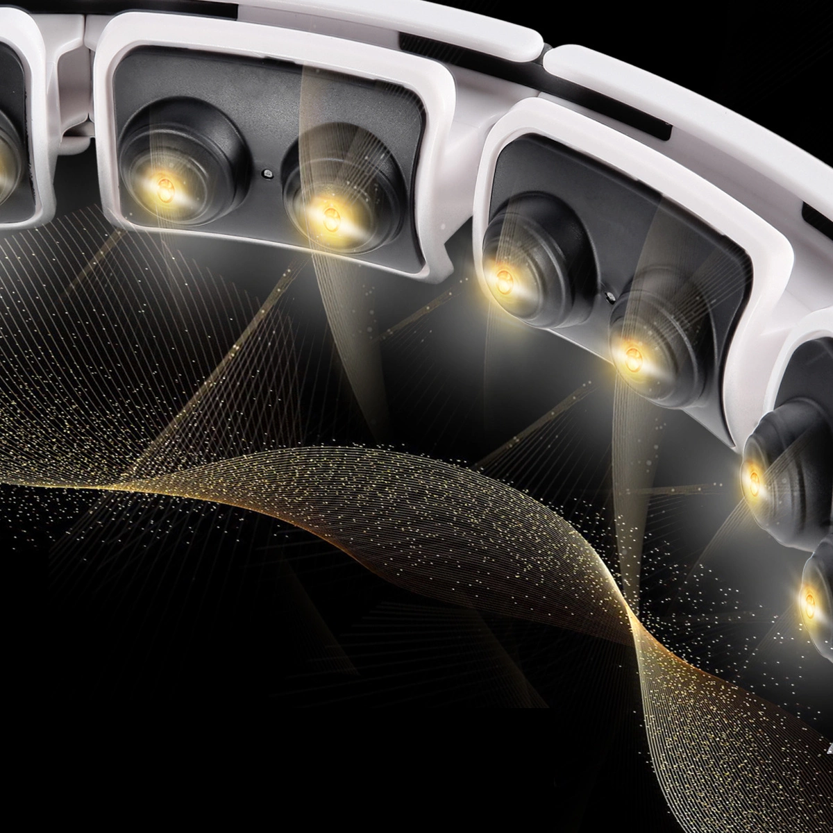 Poprzez wykonywany ruch 360 stopni, sprężyny znajdujące się w głowicach umieszczonych po całym obwodzie pętli doskonale amortyzują przeciążenia oraz dostosowują się do ciała, co powoduje dodatkowy efekt masażu, zapewniając ciału przyjemne uczucie. Trójwymiarowa technika masażu szybko pobudza mięśnie. Wbudowane wypustki o specjalnie opracowanym wyglądzie posiadają absorpcje wstrząsów dla komfortowego treningu. Dozuj intensywność wibracji poprzez szybkość obracania.