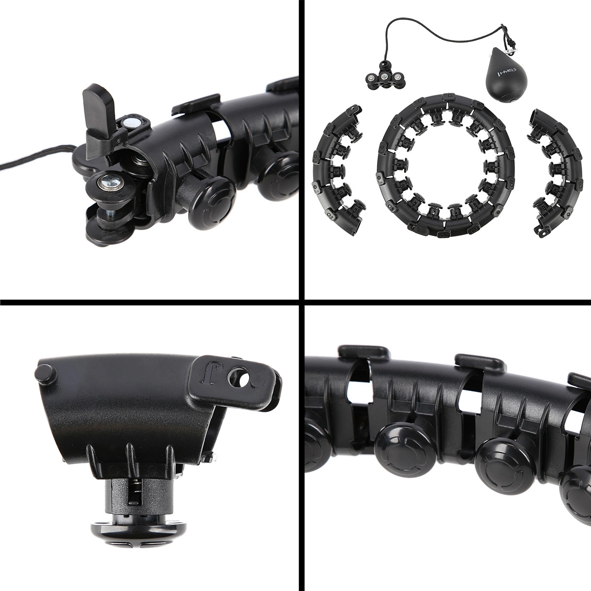 W szybki i wygodny sposób zmniejsz lub zwiększ rozmiar koła, wystarczy wypiąć lub wpiąć tyle elementów, ile potrzebujesz. HHW01 posiada łącznie 24 elementy. Rozmiar można ustawić w zakresie od 14 do 24 elementów, czyli obwód w talii od 48 cm do 106,5 cm (średnica pętli: 26 cm do 45 cm). Dzięki temu urządzenie nigdy nie spadnie podczas treningu, dlatego nawet początkujący mogą z niego korzystać.