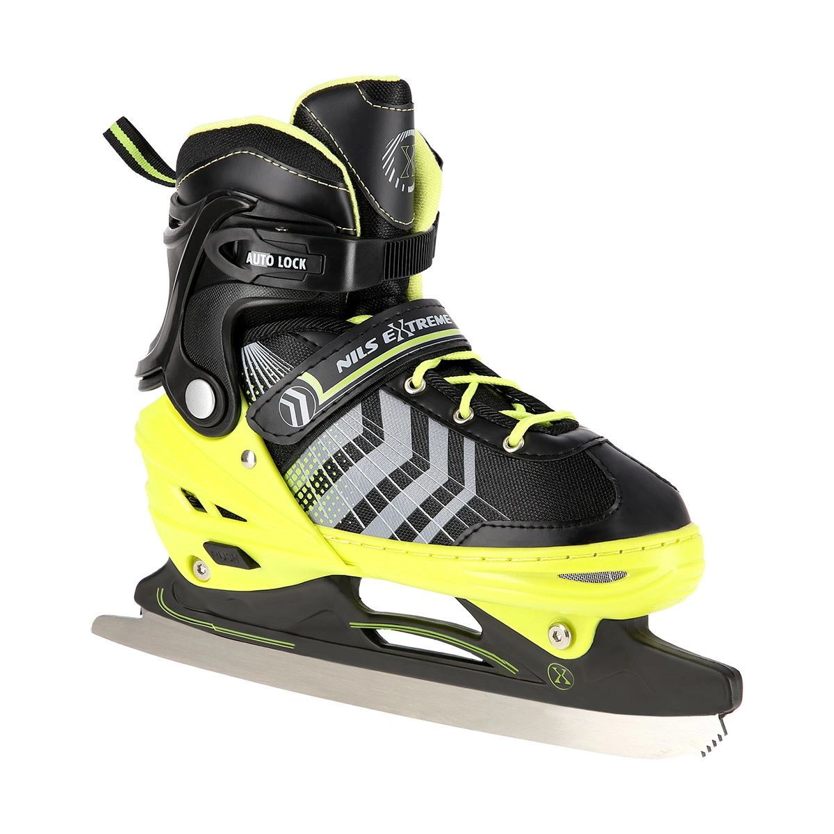 Łyżwy NH18192 Nils Extreme, charakteryzują bardzo dobre właściwości jezdne. Jest to zasługą płóz, wykonanych z wysokogatunkowej stali nierdzewnej oraz wielouchwytowego systemu zapięć, składającego się z paska na rzep, klamry i sznurowadeł, pewnie trzymającego stopy. Wszystko to sprawia, że model ten sprawdza się dobrze w każdych warunkach, dostarczając niepowtarzalnych wrażeń z jazdy.