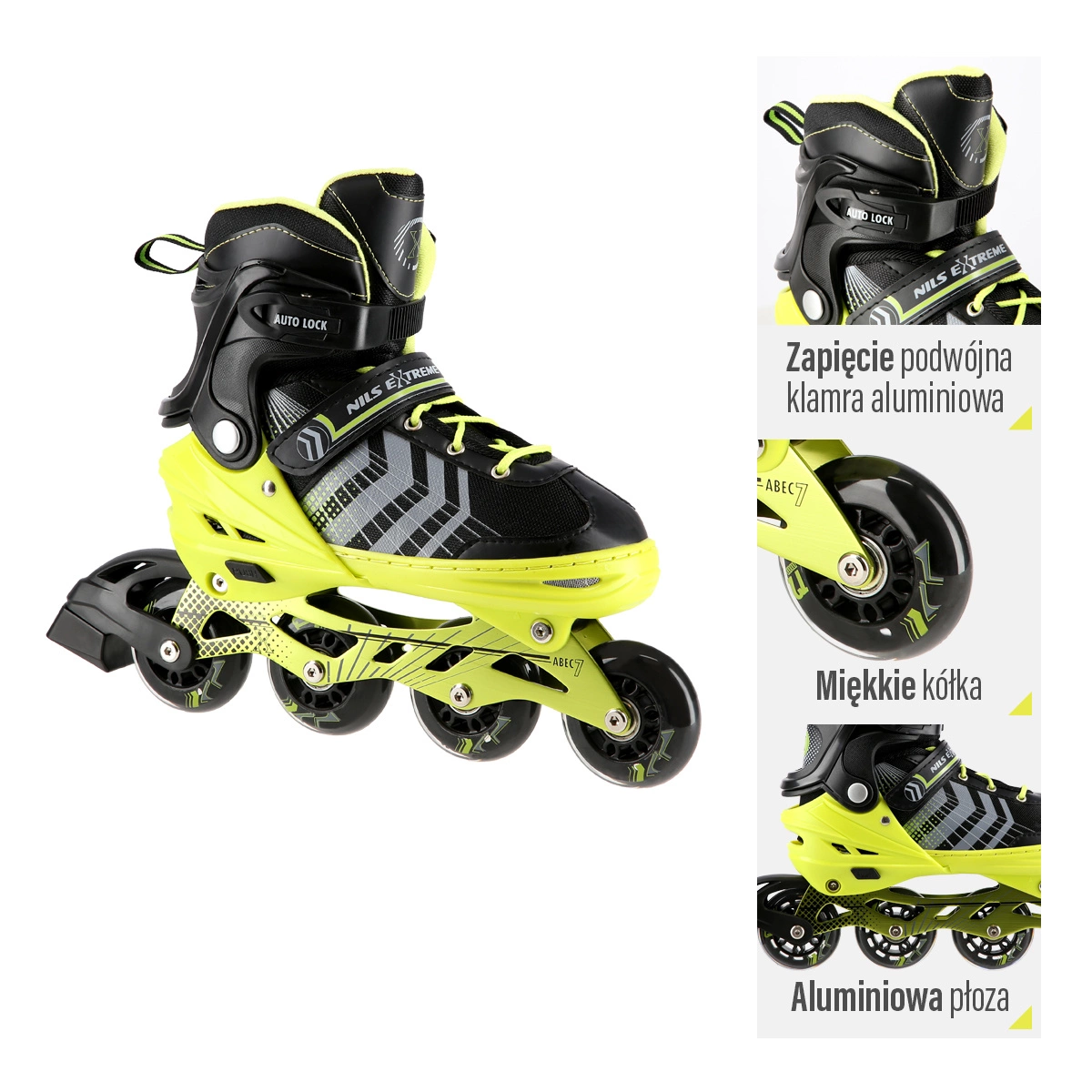 Łyżworolki dziecięce / młodzieżowe 4w1 NILS EXTREME NH18192 czarno / zielone