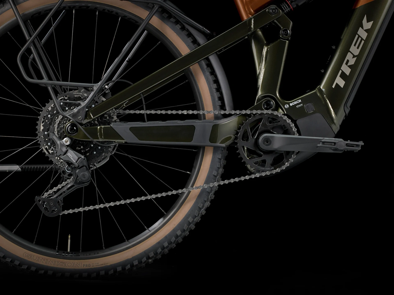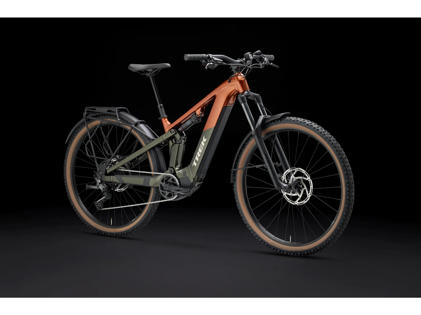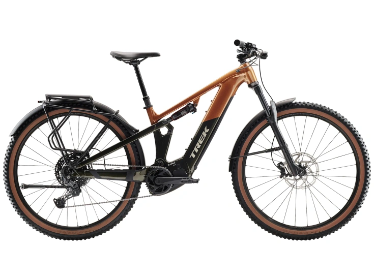 Rama Alpha Platinum Aluminium z silnikiem Bosch Performance Line CX (85 Nm, 250 W), wymienny zintegrowany akumulator PowerTube RIB 2.0 o pojemności 600 Wh oraz kontroler Purion 200. Zawieszenie o skoku 130 mm w postaci widelca RockShox Recon Silver RL ze sprężyną Solo Air oraz tłumieniem Motion Controli z przodu oraz 120 mm z tyłu, dzięki damperowi RockShox Deluxe Select. Gotowe na montaż bezdętkowy koła z odpornymi na przebicia oponami 2,4”, płynnie zmieniający przełożenia napęd Shimano CUES, sztyca podsiodłowa Bontrager Line i hydrauliczne hamulce tarczowe. Ponadto lampki, błotniki i bagażnik tylny są zamontowane fabrycznie.
