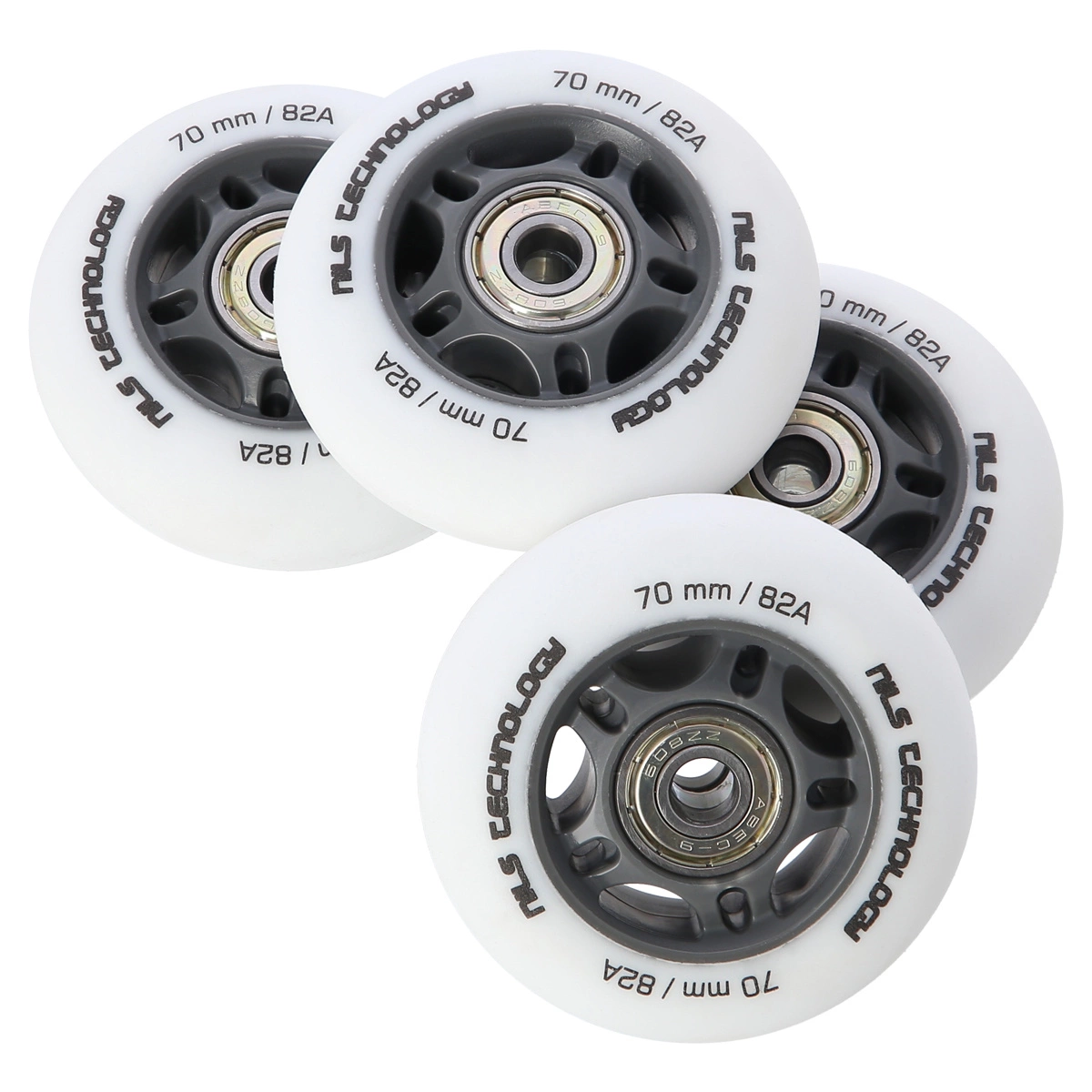 Zestaw kółek z łożyskami do rolek PU 70 x 24 82a NILS EXTREME białych