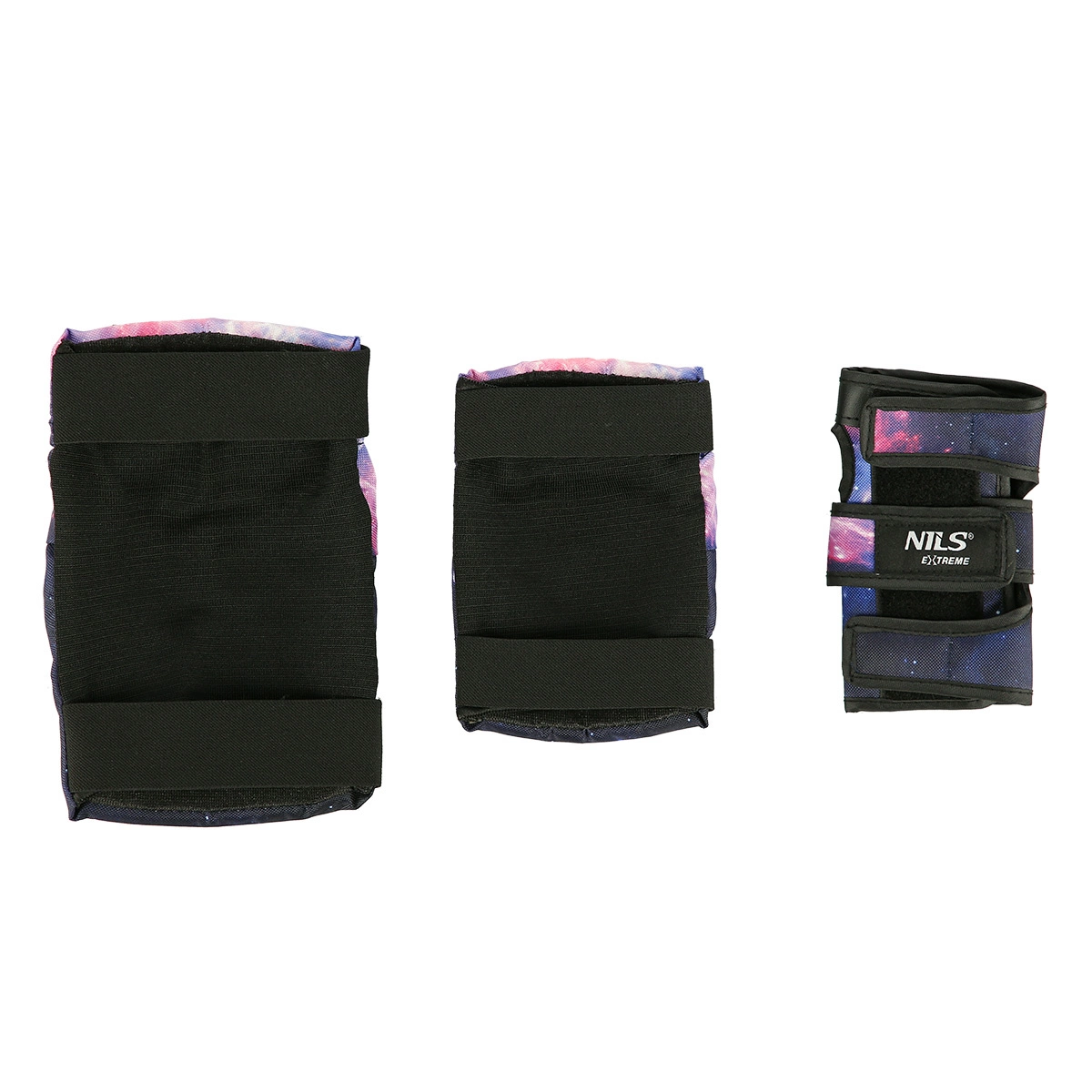 H734 Nils Extreme to zestaw ochraniaczy na nadgarstki, łokcie i kolana. Wykonany z wysokiej jakości materiałów. Skorupa zaprojektowana z mocnego i lekkiego tworzywa, które w maksymalnym stopniu zabezpieczają nadgarstki, łokcie i kolana przed urazami.. Wszystkie ochraniacze wyposażone są w zapięcie na rzepy, dzięki czemu utrzymują ochraniacze we właściwym miejscu. Zaprojektowane tak, aby użytkownik czuł się nie tylko bezpiecznie i komfortowo, ale również stylowo dzięki oryginalnej kolorystyce i trendowych wzorach.