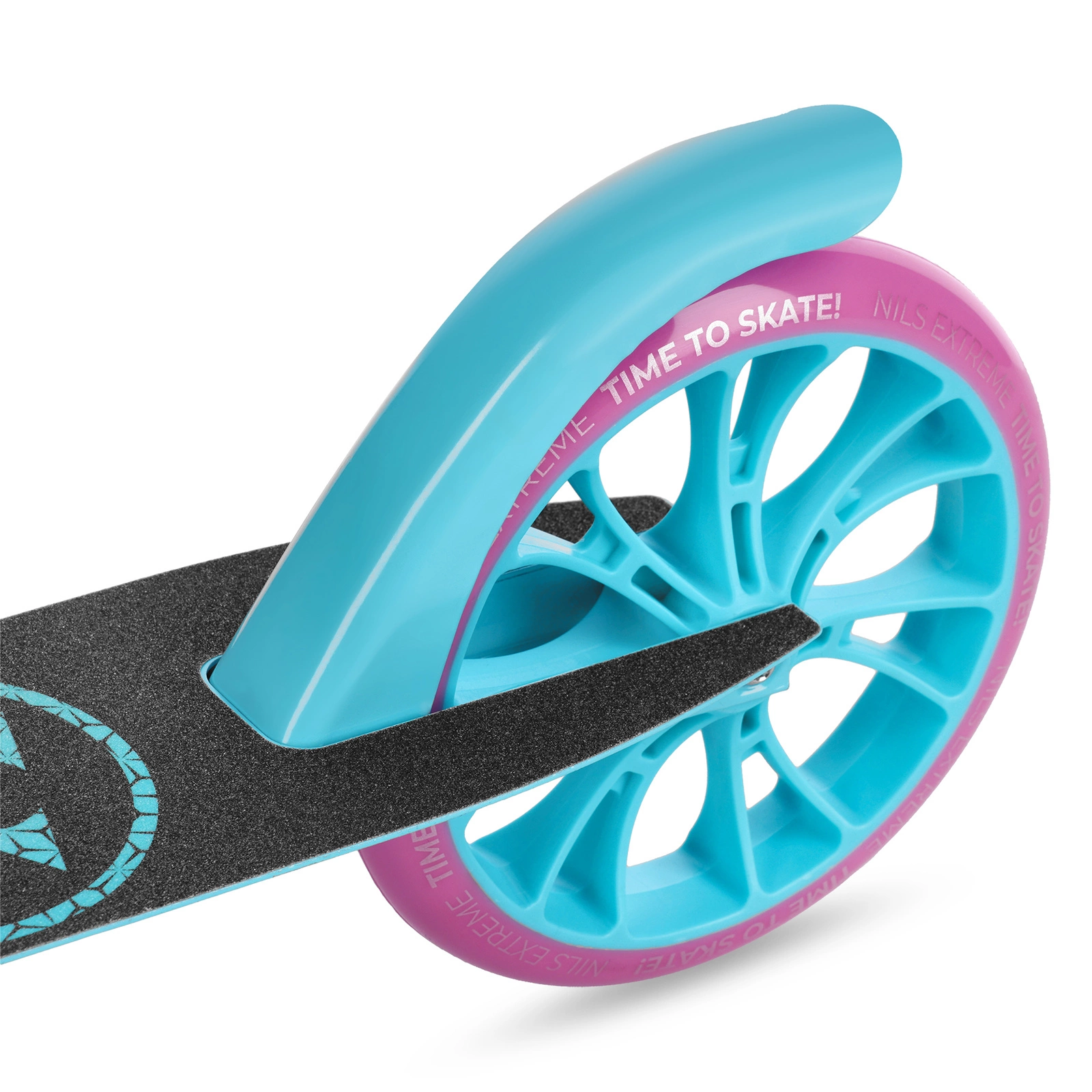Duże koła o średnicy 200 mm wykonane z wytrzymałego kauczuku, zapewniają doskonałą amortyzację i przyczepność na różnorodnych nawierzchniach – od asfaltu po brukowane chodniki. Łożyska ABEC-7 minimalizują opory toczenia, co przekłada się na płynność jazdy i większy komfort użytkowania.