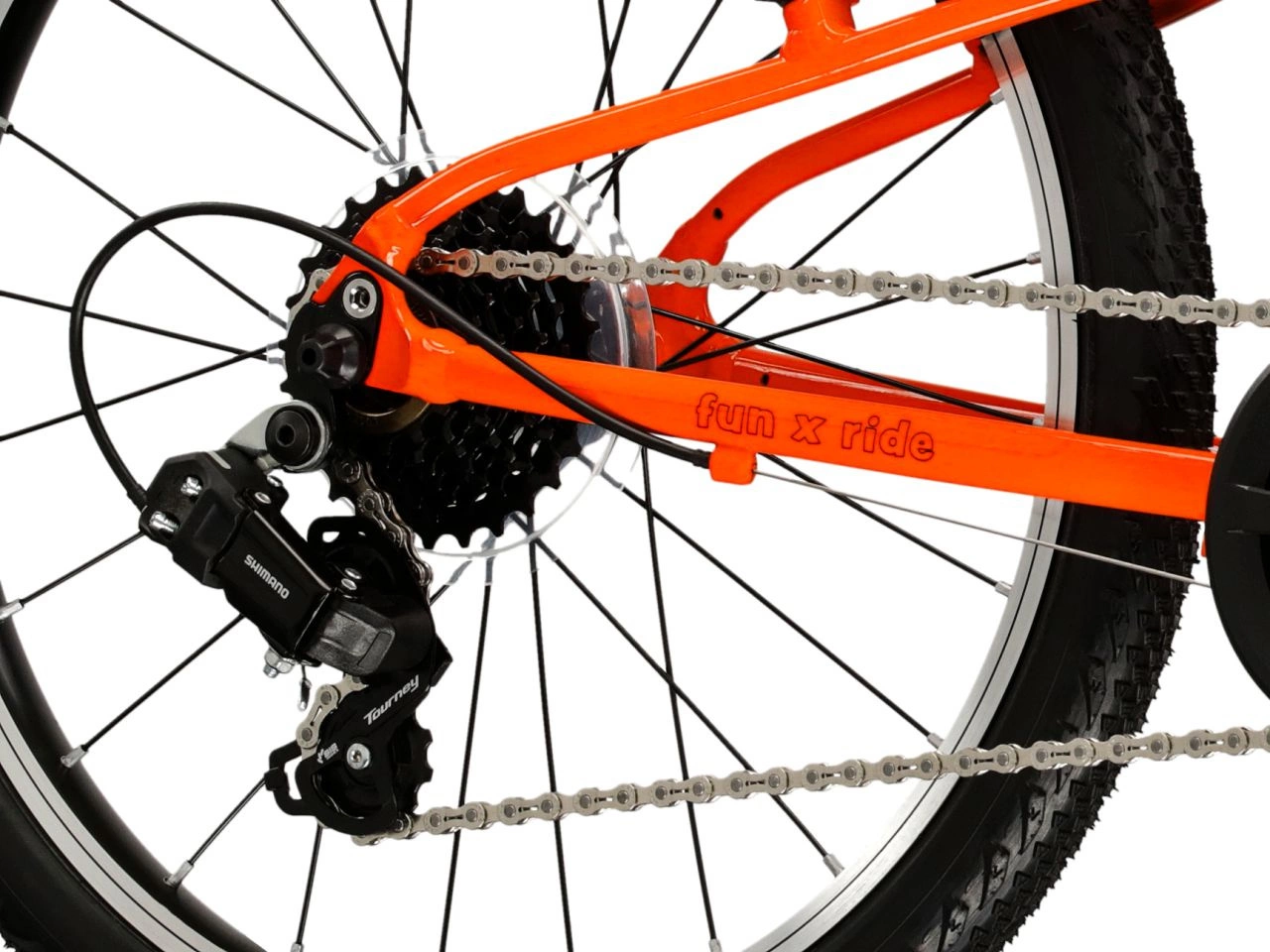 Każdy element wyposażenia KROSS Liftie został dobrany z myślą o bezpieczeństwie i ergonomii odpowiedniej dla dzieci. Napęd w systemie 1x7 umożliwi sprawne pokonywanie podjazdów oraz szybką jazdę po płaskich odcinkach. Tylna przerzutka od Shimano to trwała i sprawdzona konstrukcja, która zapewnia płynną zmianę przełożeń.