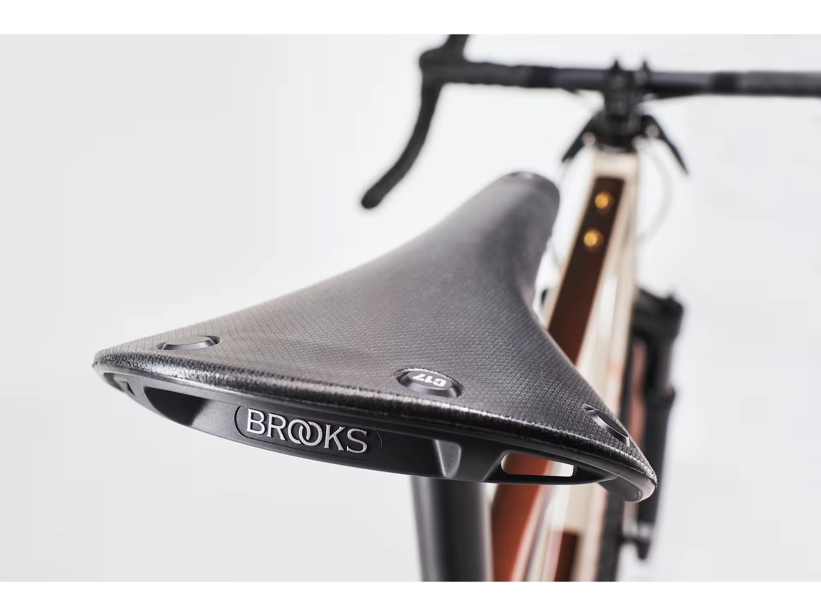 Połącz 75 mm skoku widelca z szerokimi 62 mm oponami Schwalbe Nobby Nic i wybierz nieziemskie przygody. Przerzucaj między 12 przełożeniami wysokiej klasy przerzutki gravel Shimano GRX 822. Ciesz się z luksusowego siodełka Brooks. Zmieść niezbędny bagaż w małej torbie na kierownicę zamocowanej do mini przedniego bagażnika. Korzystaj z licznych punktów mocowania na ramie do przewożenia bidonów, toreb, toreb wodoszczelnych, pomp, czegokolwiek chcesz. Aluminium pozyskiwane jest przy wykorzystaniu energii w 100% ze źródeł odnawialnych, co ogranicza emisje związane z produkcją roweru o 20% względem aluminium tradycyjnego.