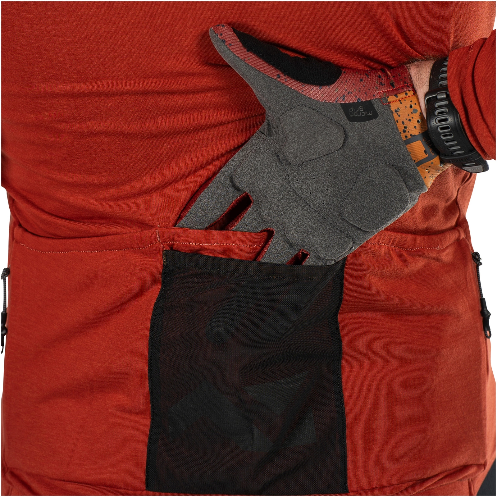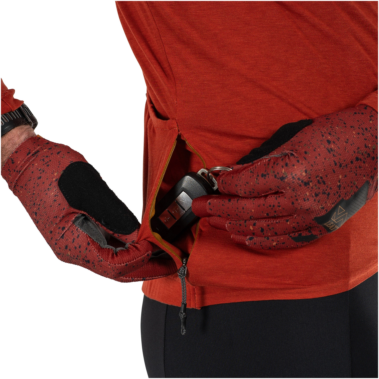 Koszulka wyposażona jest w tylne kieszenie (4 otwierane od góry, 2 zapinane na zamek) zapewniające mnóstwo miejsca do przechowywania.