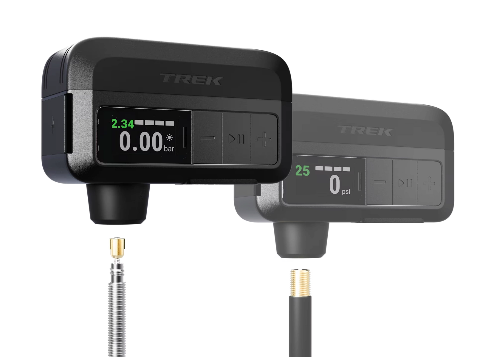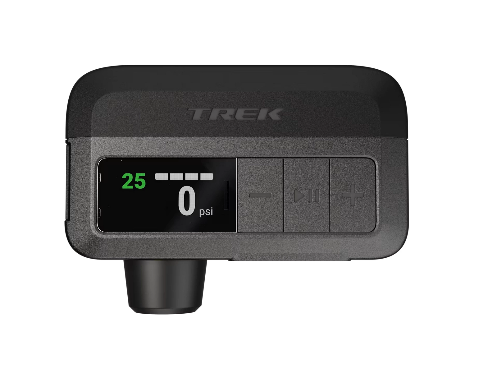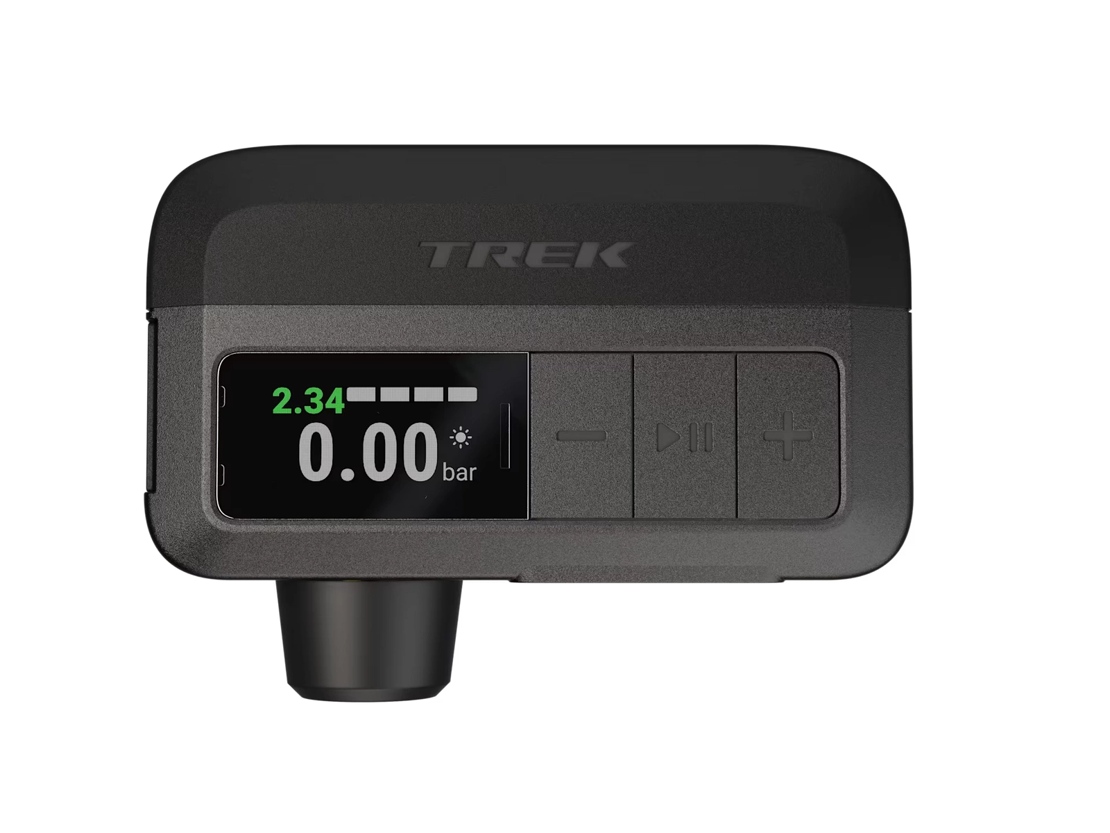Jasny cyfrowy wyświetlacz pokazuje ciśnienie docelowe, ciśnienie bieżące, poziom naładowania akumulatora i jednostkę ciśnienia, a dzięki trzem przyciskom obsługa jest wyjątkowo prosta. Ponadto jedno ładowanie zastępuje do czterech naboi 16 g CO₂.