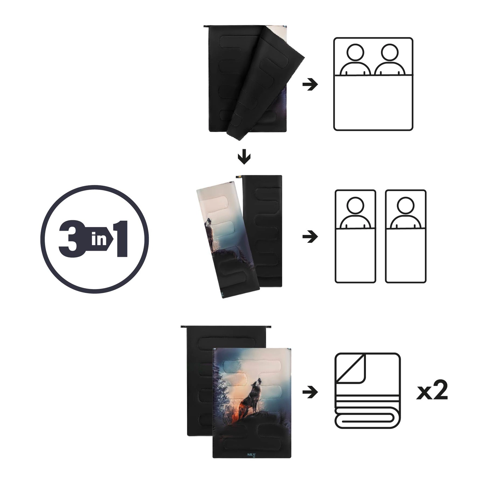 Śpiwór dwuosobowy 3w1 NILS CAMP NC3601 Wolf