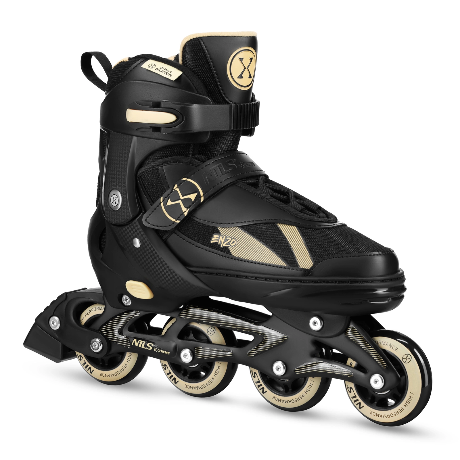 NH382 dostępne są w czterech wariantach rozmiarowych – XS, S, M i L – z możliwością regulacji długości wkładki. To sprawia, że łyżworolki mogą służyć przez dłuższy czas, dostosowując się do rosnącej stopy dziecka. Duży zakres wagowy (od 20 do 100 kg) pozwala na użytkowanie zarówno przez dzieci, młodzież, jak i dorosłych.