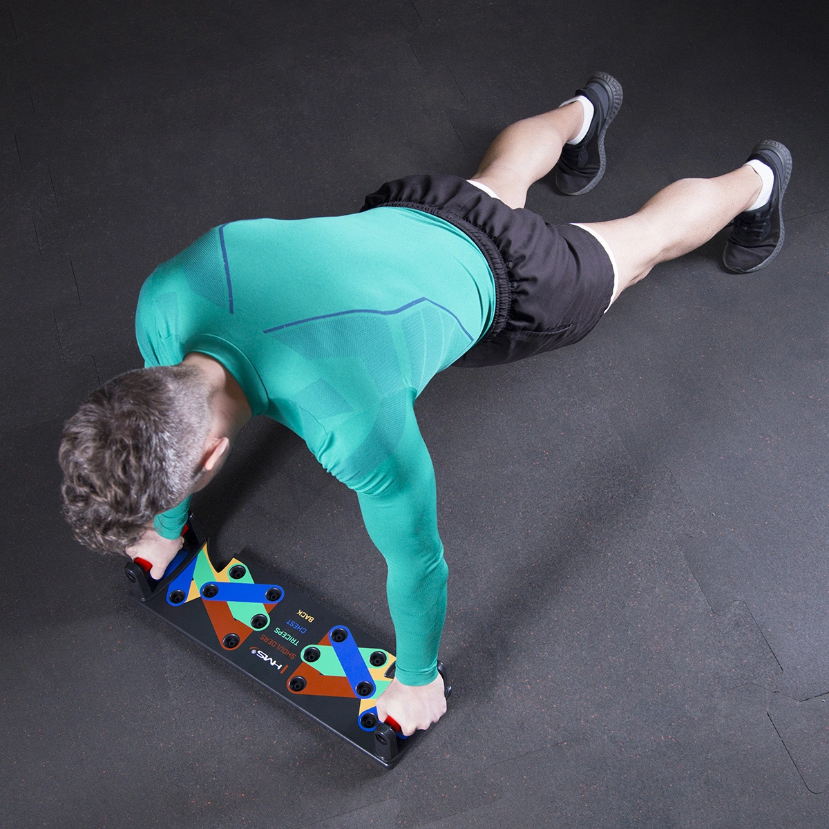 PU10 MULTI marki HMS, to innowacyjna i wielofunkcyjna deska, służąca do wykonywania ugięć ramion w podporze przodem, czyli tzw. pompek.