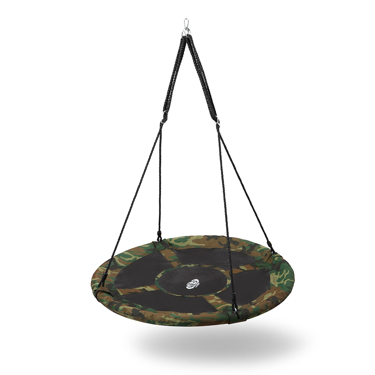 Idealnie sprawdzi się, do powieszenia w ogrodzie, na tarasie czy balkonie. W przypadku złej pogody, może być także zawieszone w domu. Montaż jest bardzo prosty, więc w kilka chwil, będziemy gotowi do zabawy. Huśtawka, ma okrągłe siedzisko o średnicy aż 110 cm, co za tym idzie pomieści więcej, niż jednego miłośnika tej zabawy. To niewątpliwy atut, ponieważ wszyscy wiemy, że w towarzystwie jest lepsza zabawa. Dzięki możliwości regulacji długości lin mocujących, możemy dostosować wysokość produktu, do wzrostu użytkownika. W połączeniu, z maksymalnym dopuszczalnym obciążeniem 150 kg, mówi to tylko jedno – to coś dla małych i dużych. Dla dzieci super zabawa i wygłupy, dla rodziców relaks.