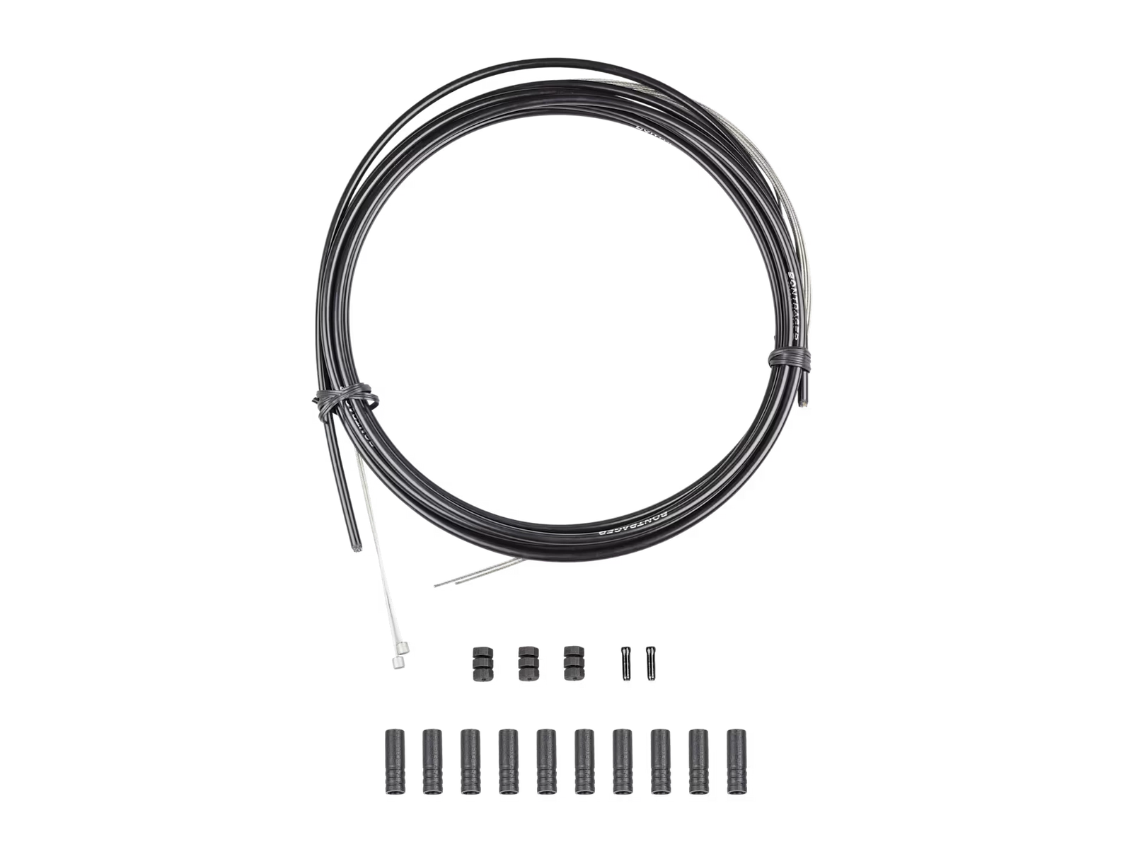 Zestaw zawiera nasmarowany pancerz, fabrycznie naciągnięte linki ze stali nierdzewnej, nasadki, zabezpieczenia ramy oraz końcówki linki przedniej i tylnej przerzutki.