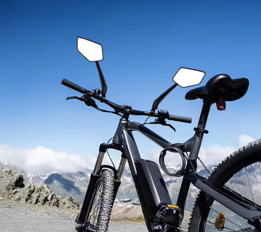Praktyczne i solidne lusterko wsteczne montowane bezpośrednio na kierownicy roweru lub hulajnogi.