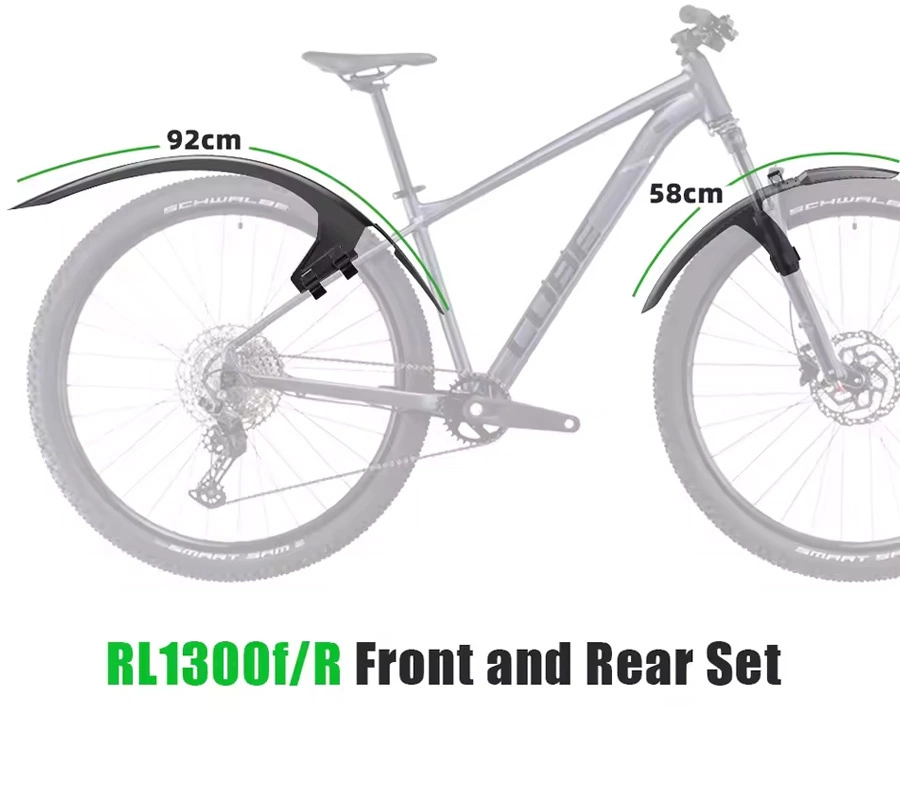 Zestaw błotników RBRL RL-1300 to solidne i praktyczne rozwiązanie dla rowerów górskich MTB. Dzięki poszerzonej i wydłużonej konstrukcji zapewniają skuteczną ochronę przed wodą, błotem oraz kamieniami wyrzucanymi spod kół. Montaż błotników odbywa się szybko i bez użycia narzędzi, co sprawia, że są idealne zarówno dla amatorów, jak i zaawansowanych rowerzystów.