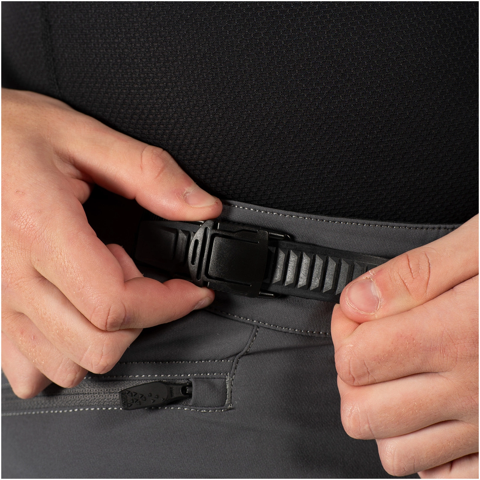 Solidne zapięcie z regulacją w pasie gwarantuje idealne dopasowanie – niezależnie od tego, czy jedziesz z ochraniaczami bioder, czy bez. Silikonowe wykończenie zapobiega zsuwaniu się spodenek podczas jazdy.