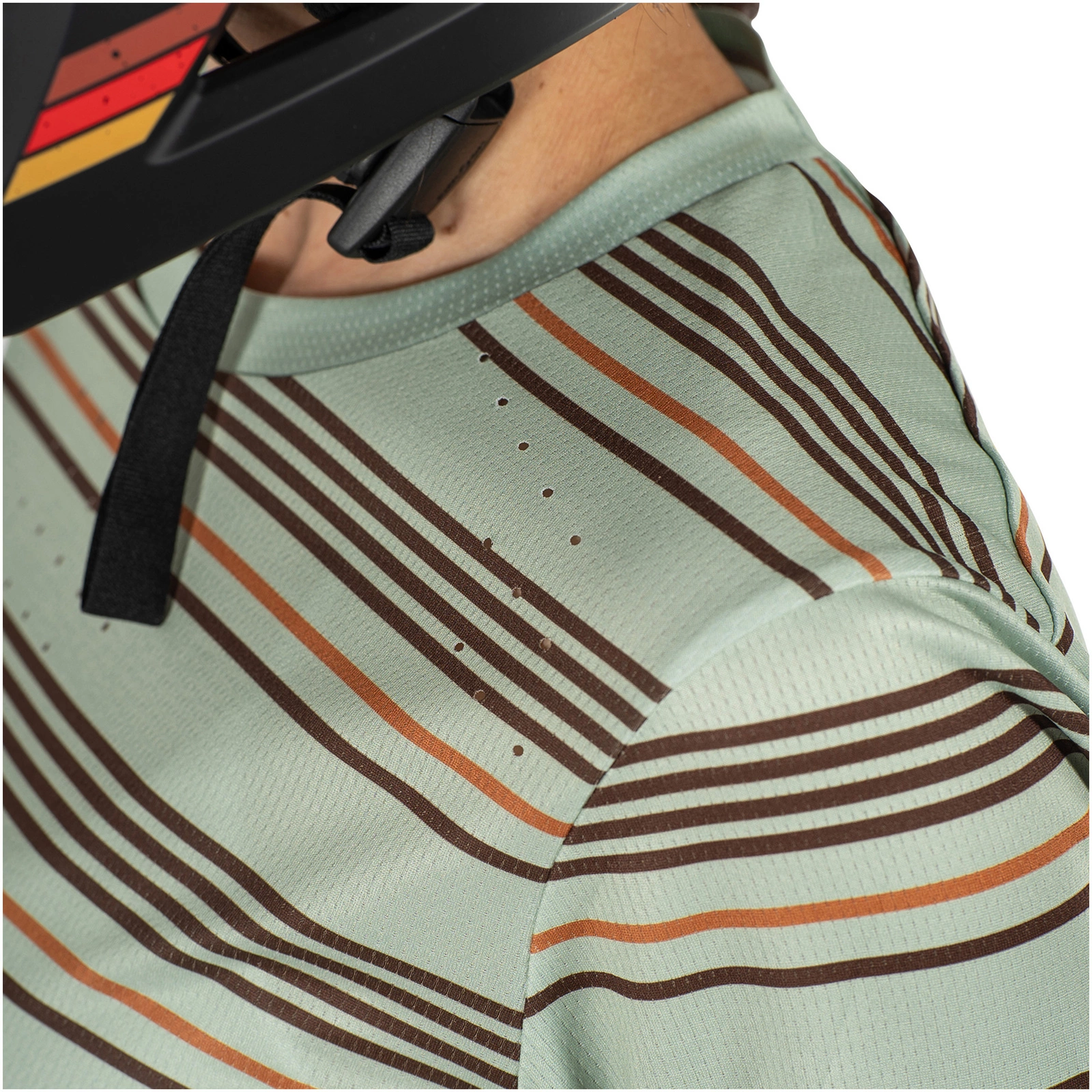 Ta koszulka z długim rękawem sprawdzi się nawet podczas cieplejszych dni, dzięki zastosowaniu materiału IceYarn, który ma naturalne właściwości chłodzące, oraz laserowo wycinanym otworom wentylacyjnym. Sportowy, regularny krój pozwala na komfortowe noszenie dopasowanych ochraniaczy pod koszulką. W dolnej części wszyta jest mikrofibrowa ściereczka do gogli, która ułatwia szybkie i wygodne czyszczenie okularów.