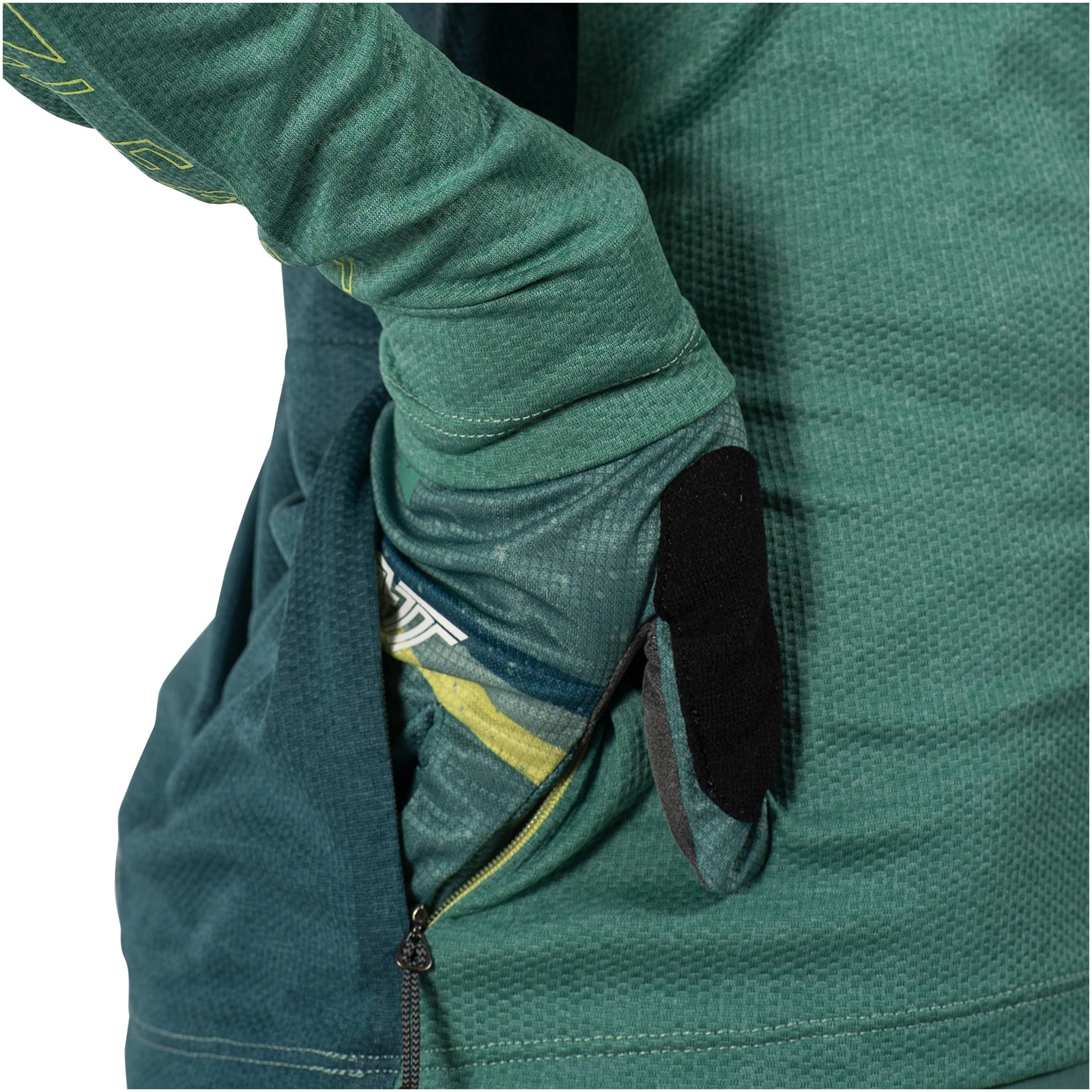 Idealna koszulka z długim rękawem – nawet na cieplejsze dni. Wykonana z ultralekkiego, szybkoschnącego materiału, zapewnia świetną wentylację i komfort noszenia. Na plecach i pod pachami zastosowano techniczną tkaninę IceYarn, stworzoną z przetworzonych fusów kawy – materiał ten zapewnia naturalny efekt chłodzenia. Dopasowany, elastyczny krój gwarantuje swobodę ruchów, a praktyczne detale, takie jak tylna kieszeń na zamek z mikrofibrą do czyszczenia gogli oraz elementy odblaskowe, zwiększają funkcjonalność i bezpieczeństwo w warunkach słabego oświetlenia.