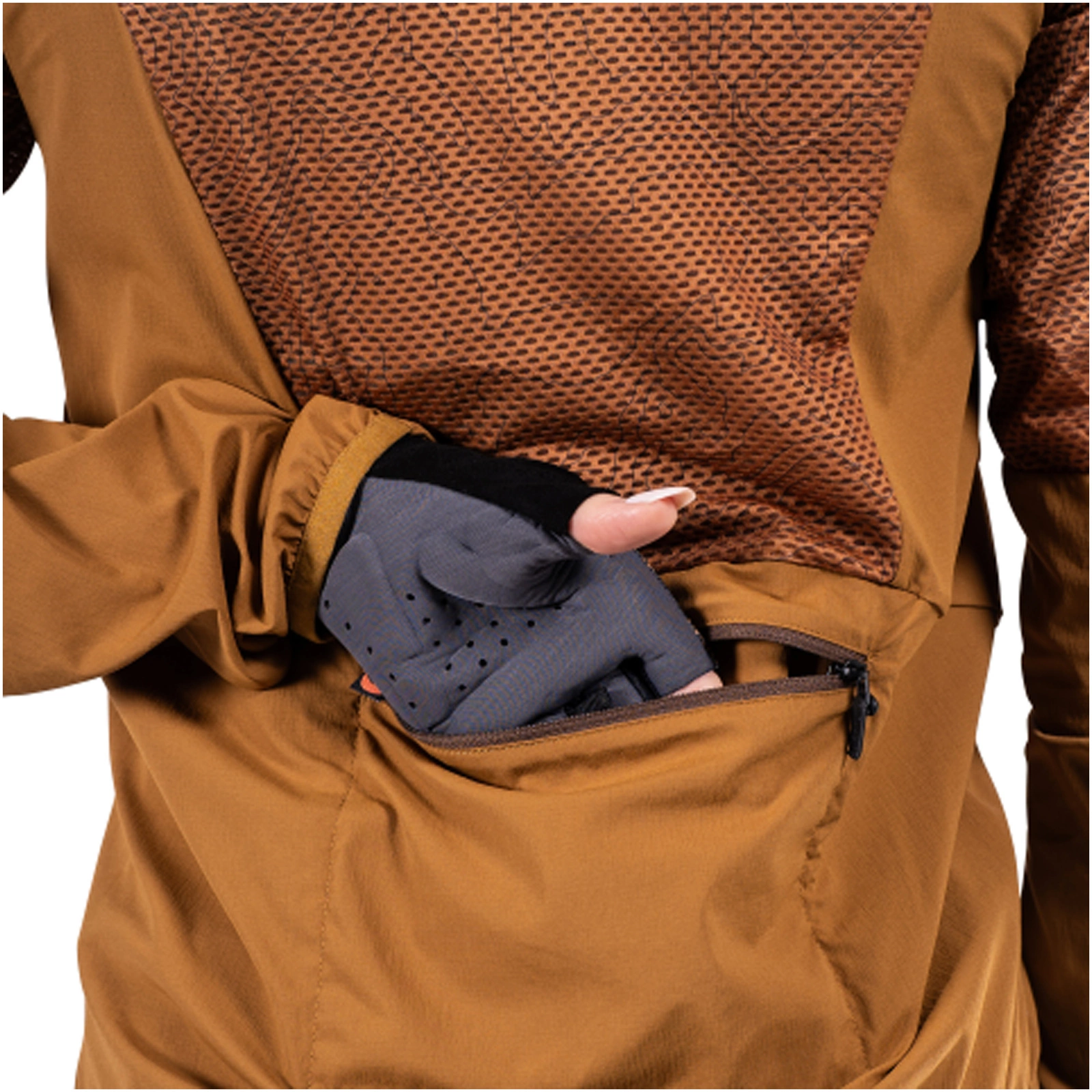 - Możliwość spakowania kurtki do własnej kieszeni (zamek z odwracalnym suwakiem)