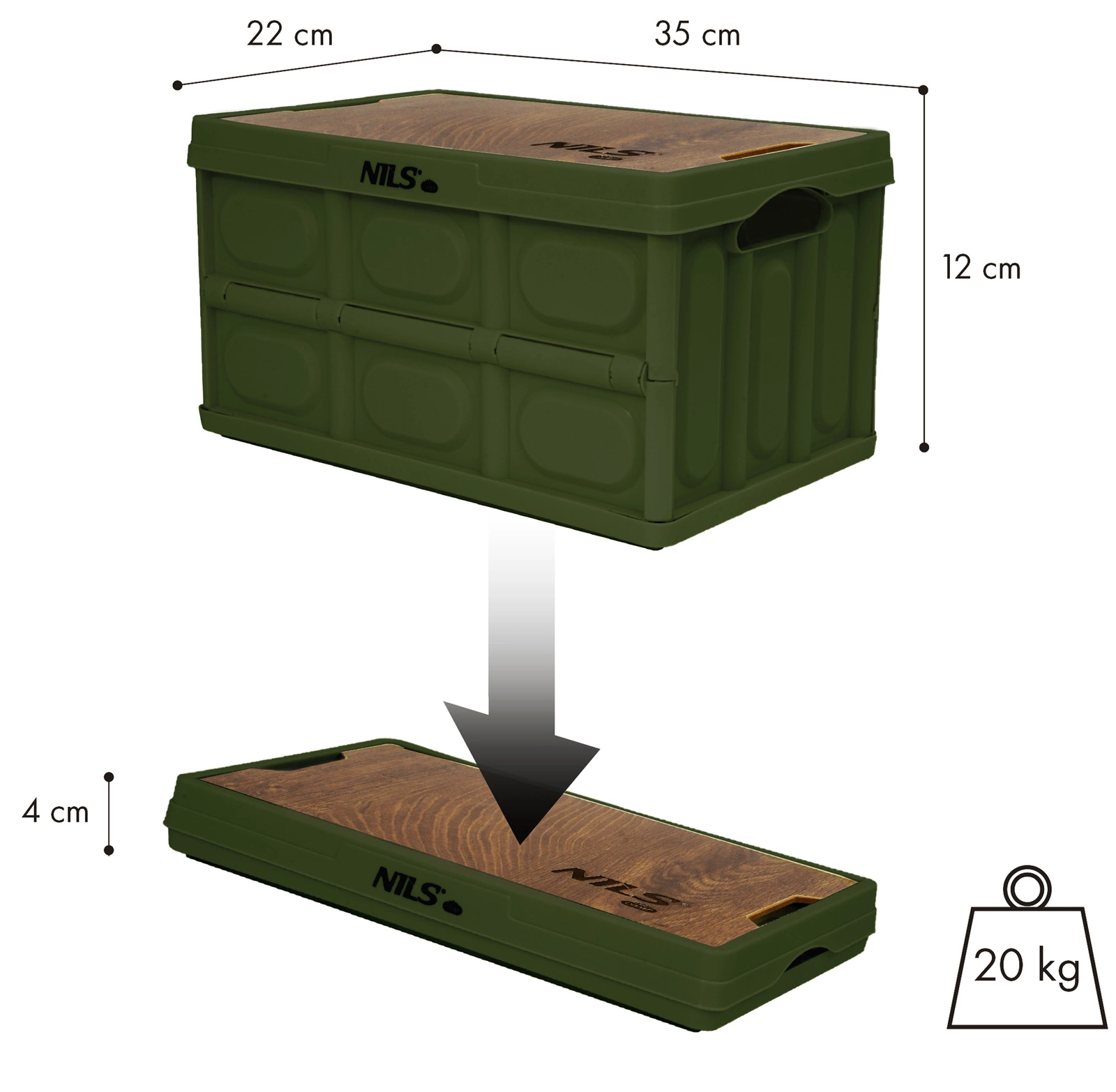 Składana skrzynia kempingowa z funkcją stołu NILS CAMP NCB4007 9L zielona