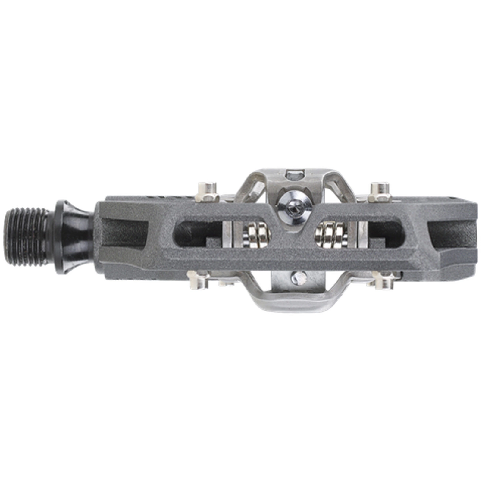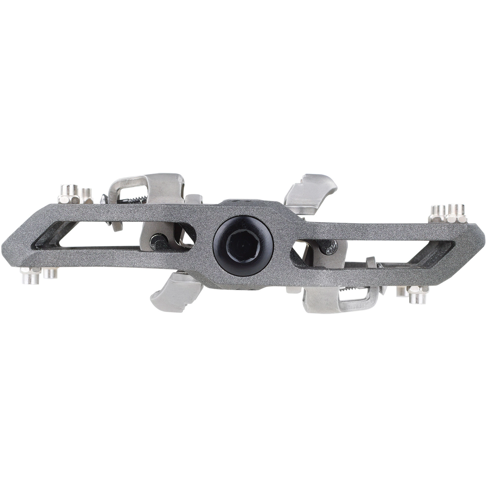 Szeroka platforma wokół mechanizmu wpinania stabilizuje but, poprawiając przeniesienie mocy i kontrolę nad rowerem. Dodatkowe piny i płyta trakcyjna umożliwiają indywidualne dopasowanie przyczepności podczas jazdy z wypiętymi butami.