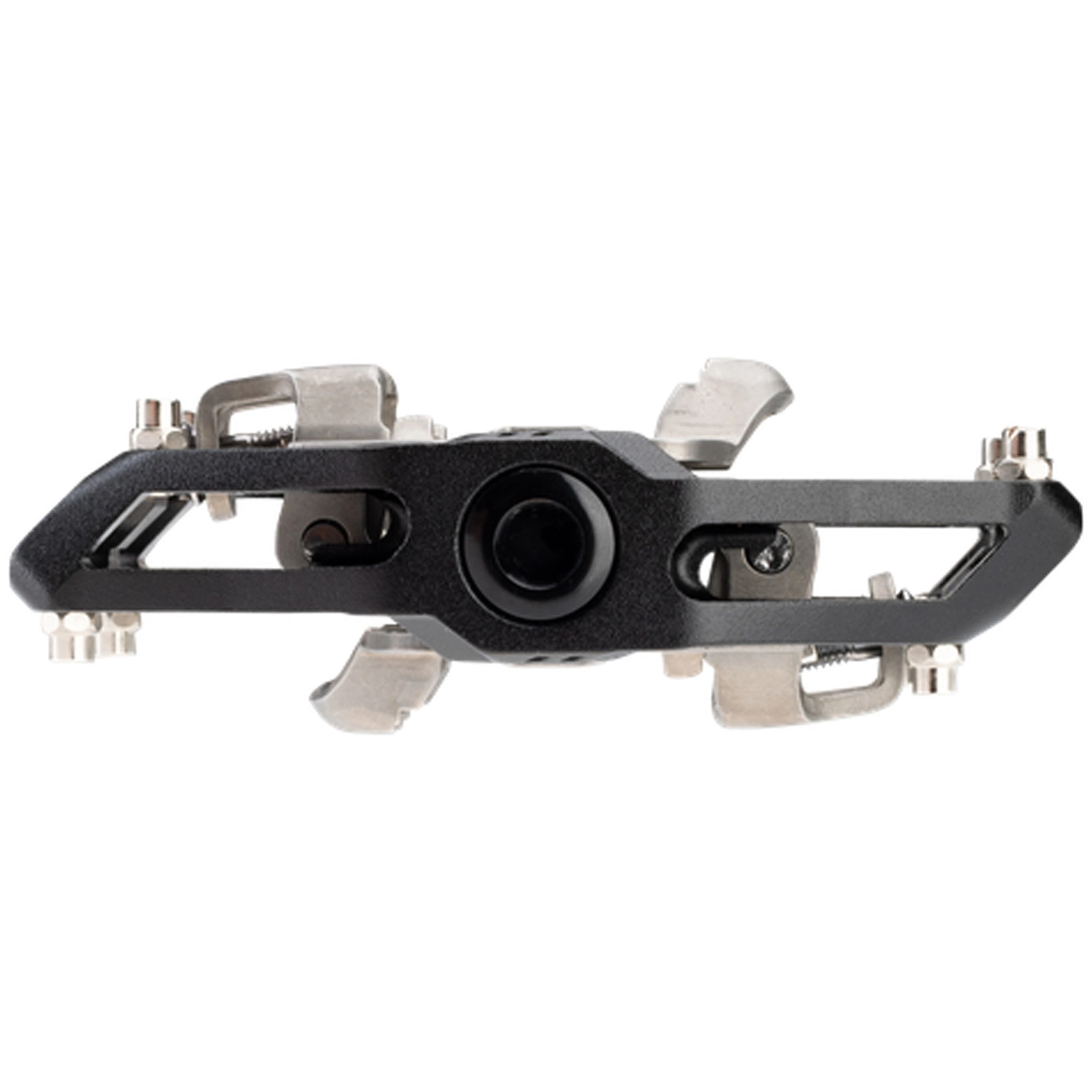 Szeroka platforma z pinami otaczająca mechanizm wpinania stabilizuje but, poprawiając kontrolę nad rowerem i efektywność przenoszenia mocy. Pedały zostały przetestowane i certyfikowane zgodnie ze standardem EFBE EPAC Gravity TRI-TEST® (kategoria 5).