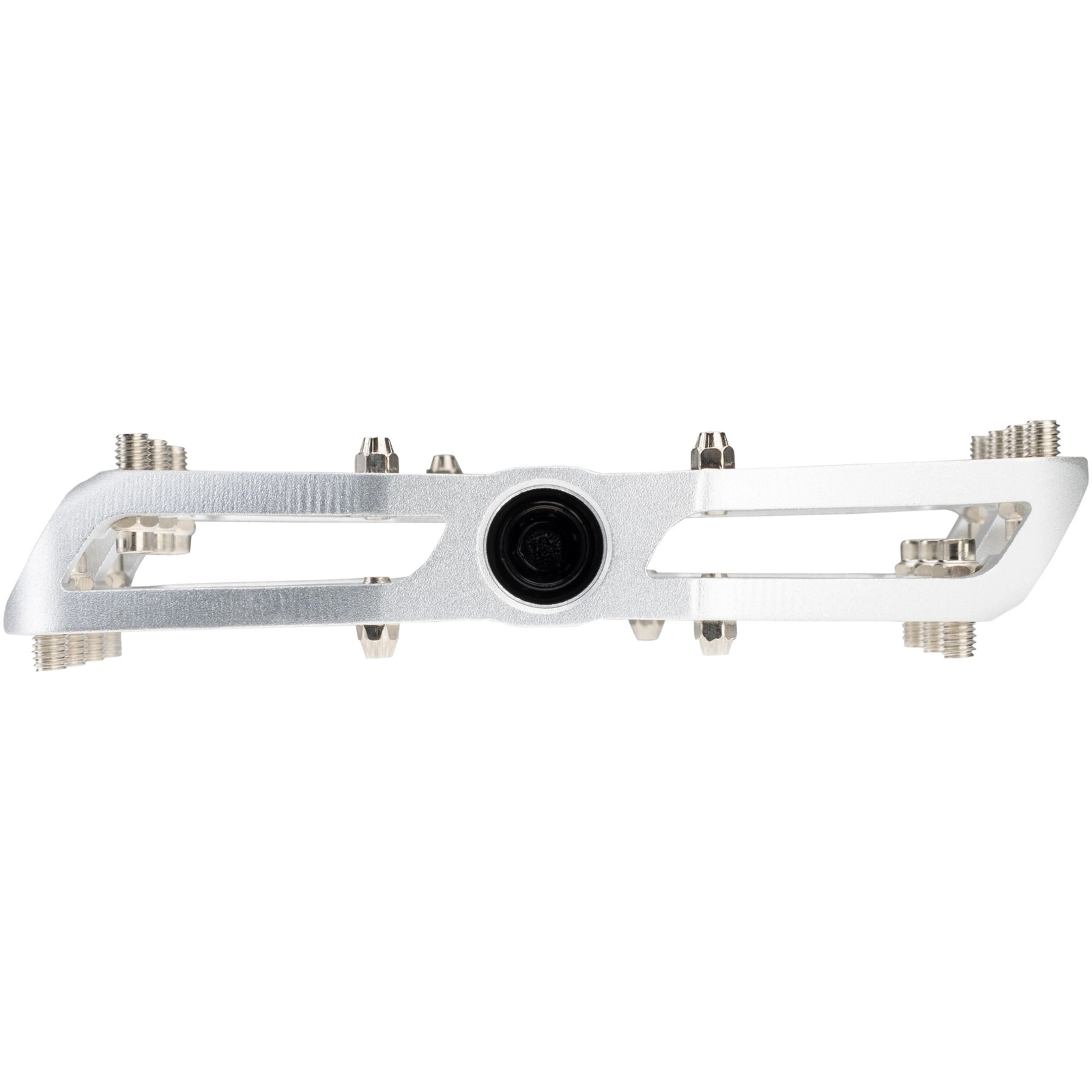 Choć nie są to najcieńsze pedały (16 mm grubości), oferują 5 mm wklęsłość platformy, która poprawia czucie i przyczepność buta. Po obu stronach znajduje się 10 stalowych pinów (7 wkręcanych od spodu i 3 wciskane od góry), zapewniających pewne oparcie.