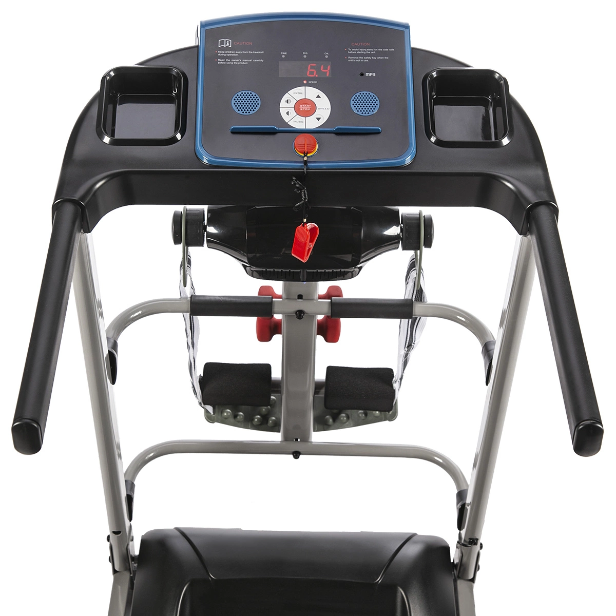 Jest kompaktowym produktem wyposażonym w antypoślizgowy pas bieżny i silnik z automatyczną regulacją prędkości. Produkt został wykonany z materiałów najlepszej jakości. To stabilne oraz bezpieczne urządzenie, które zostało przystosowane do prowadzenia treningu w warunkach domowych. Dzięki swoim rozmiarom oraz systemowi amortyzatorów, konstrukcja zapewnia komfortową przestrzeń do ćwiczeń. Ergonomiczny pulpit sterujący, pozwala wygodnie zarządzać funkcjami komputera, takimi, jak m.in.: czas, prędkość i dystans. Niewątpliwym plusem, będą również wbudowane głośniki, przez które dzięki wejściu audio, rozbrzmiewać będzie nasza ulubiona muzyka.