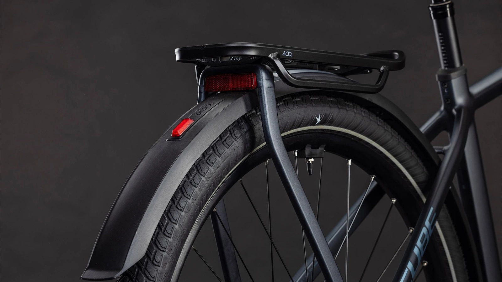 • Pełne wyposażenie turystyczne: przednie i tylne światła, błotniki, dzwonek, nóżka i bagażnik ACID Integrated Carrier 3.0.