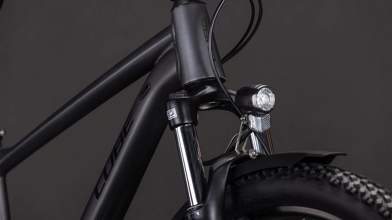Błotniki, oświetlenie zasilane dynamem, solidny bagażnik oraz podpórka sprawiają, że Aim Pro FE doskonale sprawdzi się w drodze do pracy, na zakupy czy podczas dłuższych wycieczek. Jednocześnie amortyzowany widelec SR Suntour o skoku 100 mm, hydrauliczne hamulce tarczowe Shimano oraz nowoczesny napęd Shimano Cues 1x10 zapewniają pełną kontrolę i komfort także poza asfaltem.